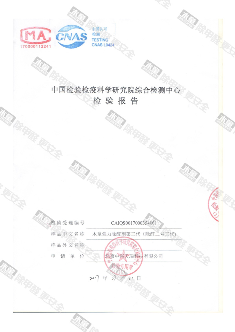 木童除醛2號三代安全性檢測報告