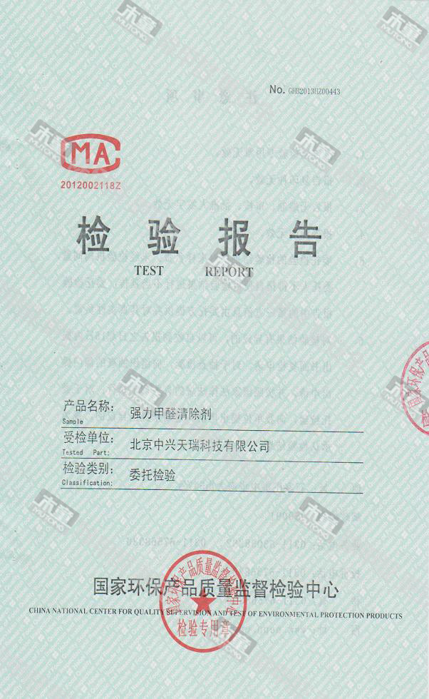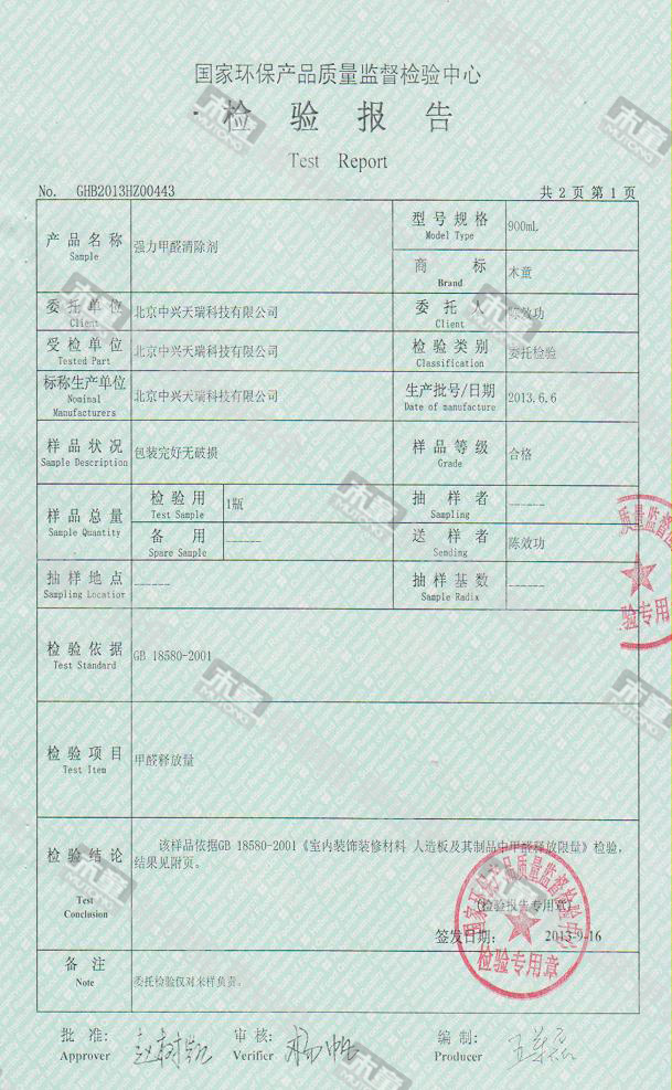 網站首頁 - 產品中心- 檢測報告- 木童除醛2號三代效果檢驗報告2013