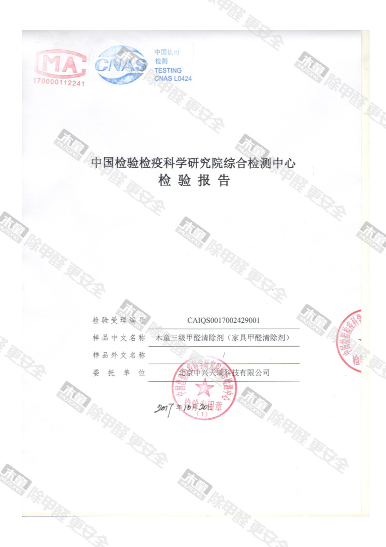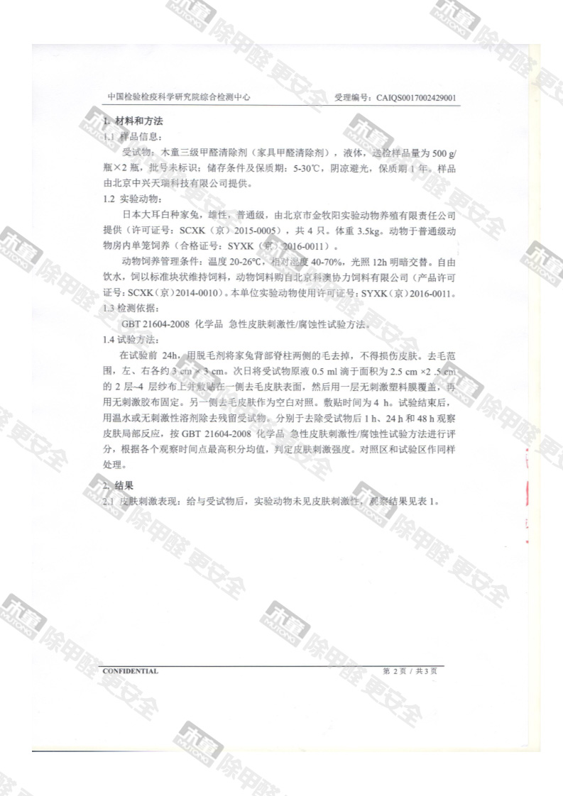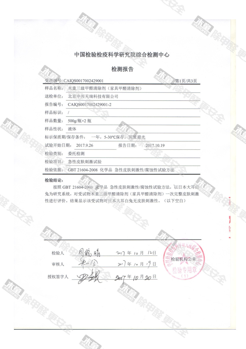 網站首頁 - 產品中心- 檢測報告- 木童家具甲醛清除劑皮膚安全性檢測報告